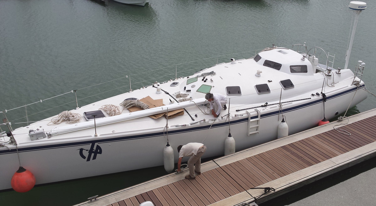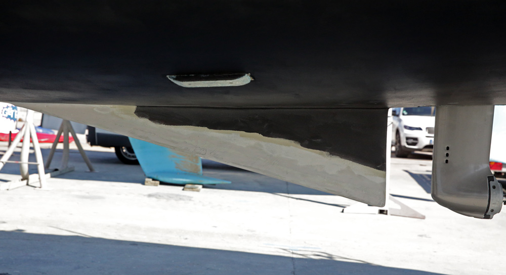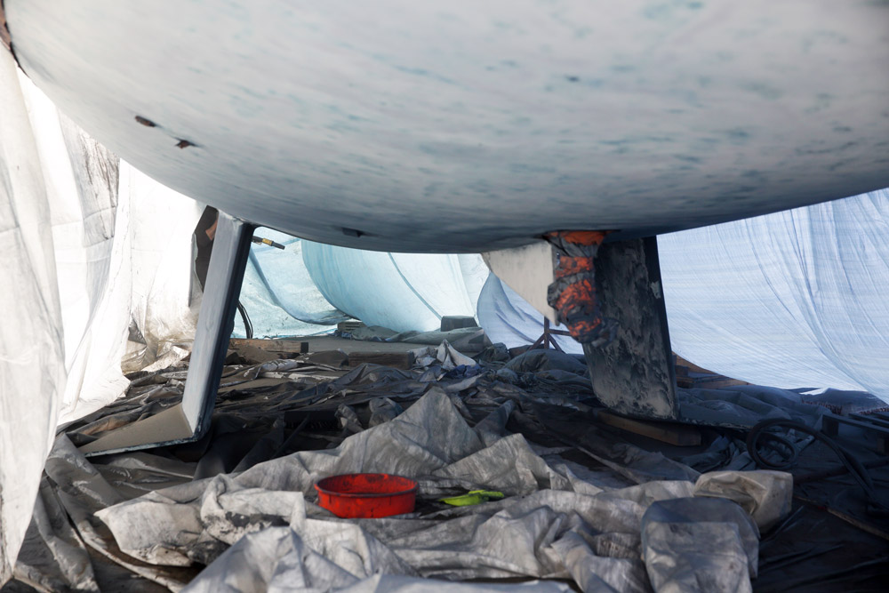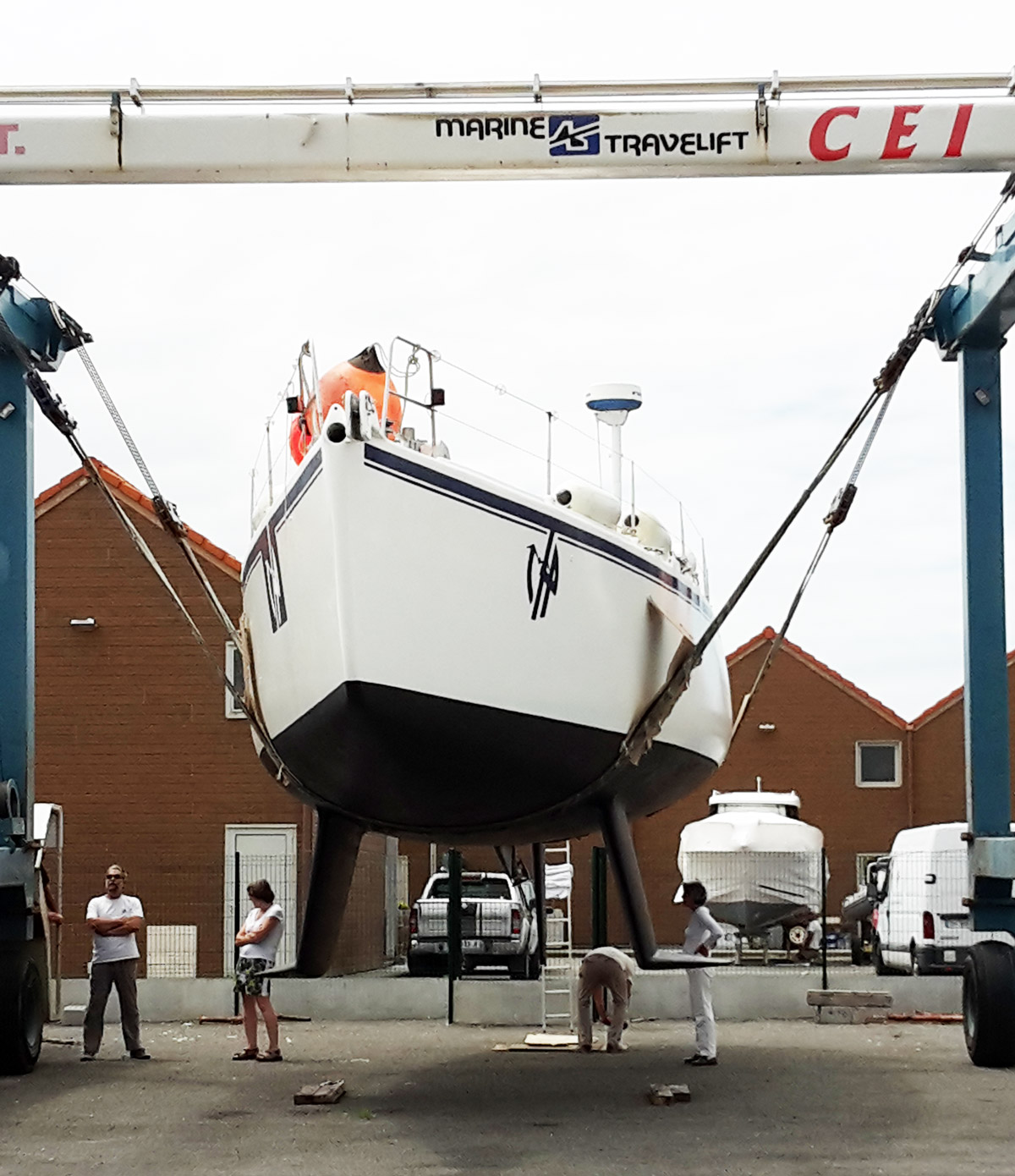 1 juillet : nouvel antifouling, reprise des extrémités des ailettes qui ont souffert dans le canal de Crinan à la fin de l'été dernier. Enfin reprise de l'aileron de protection du sail drive pour améliorer ses performances et limiter la traînée.