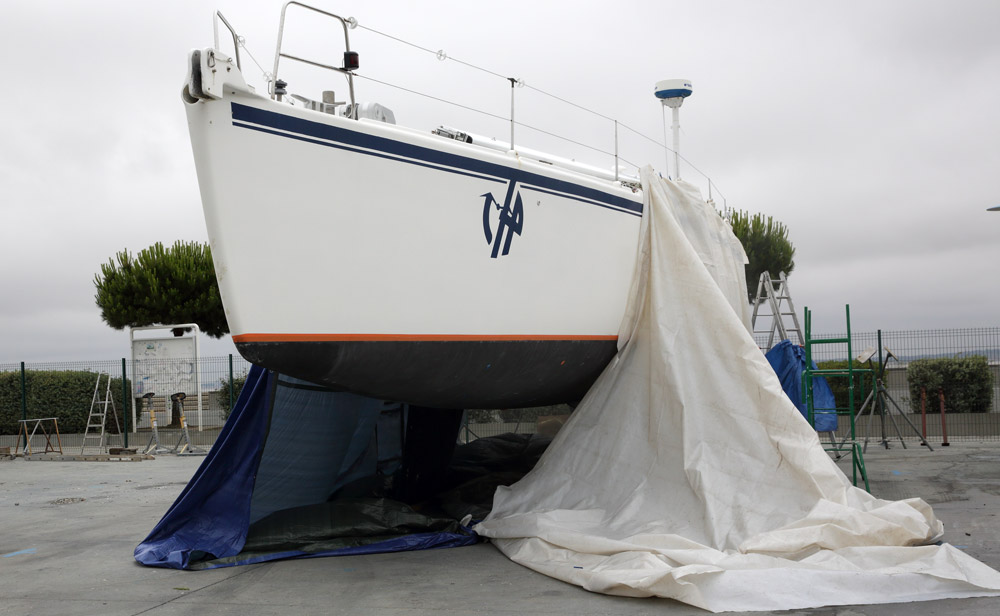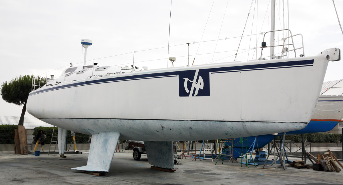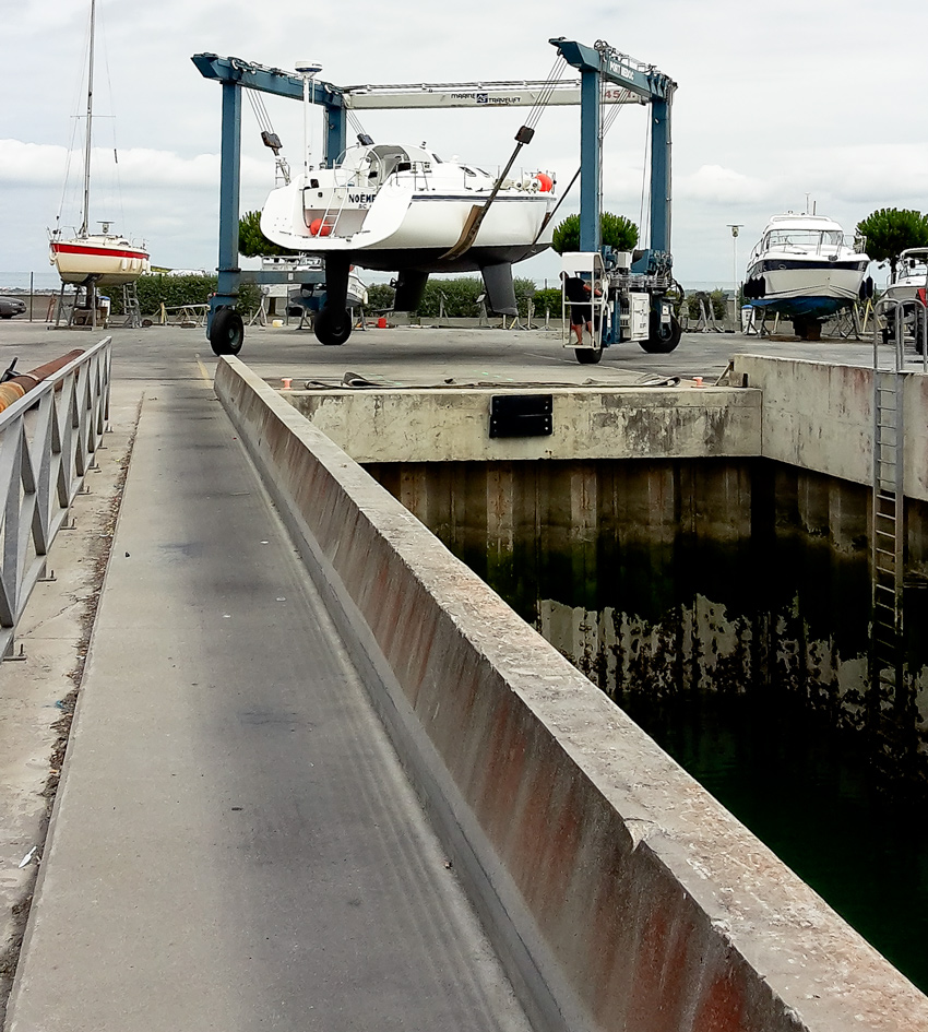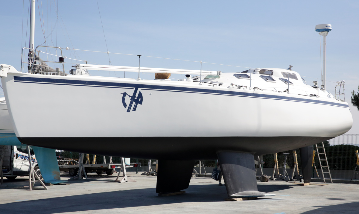 1 juillet : nouvel antifouling, reprise des extrémités des ailettes qui ont souffert dans le canal de Crinan à la fin de l'été dernier. Enfin reprise de l'aileron de protection du sail drive pour améliorer ses performances et limiter la traînée.