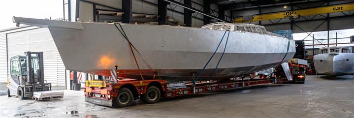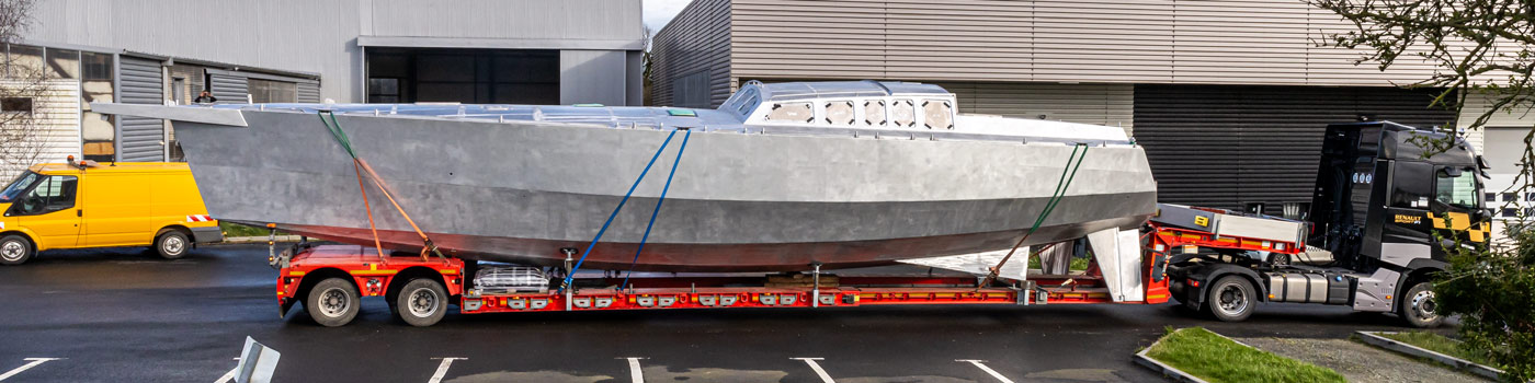 Le transport de la coque du Paradoxe 170 de Plestin les Grèves à Parempuyre.