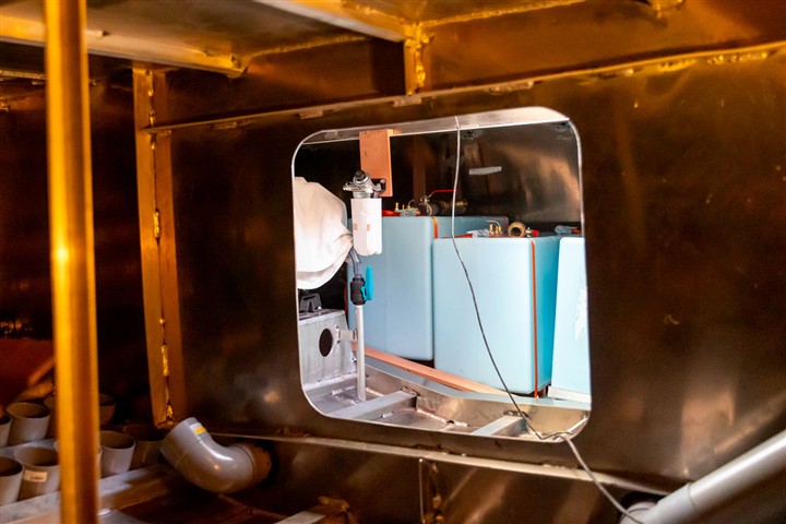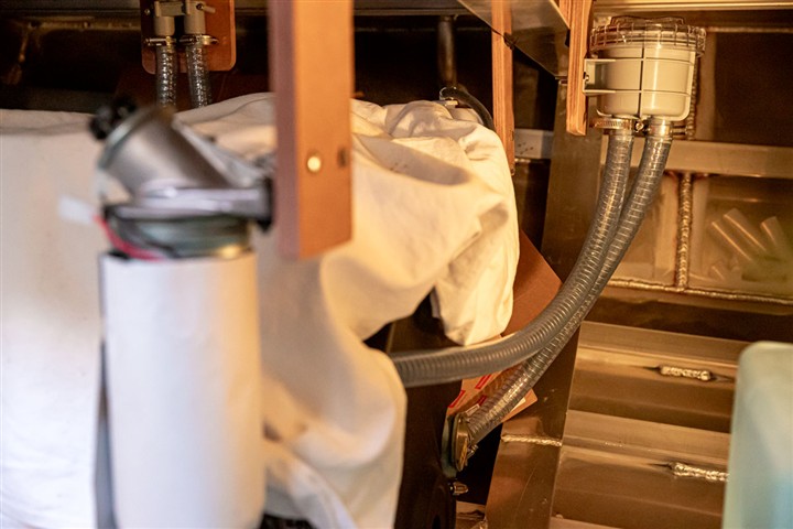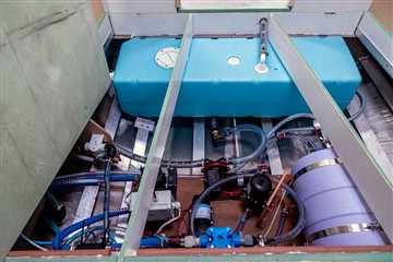 Installation du circuit d'eau sous pression, du chauffe eau, du dessalinisateur, de l'évacuation des eaux grises, de l'electroscan pour l'évacuation des eaux noires, de la pompe de cale.