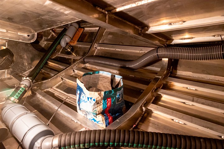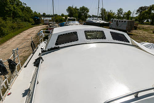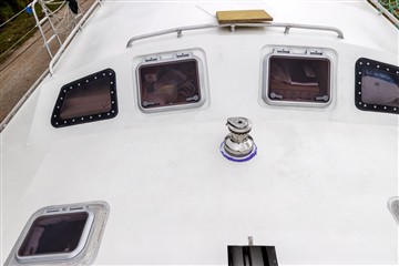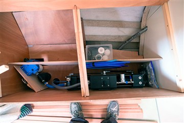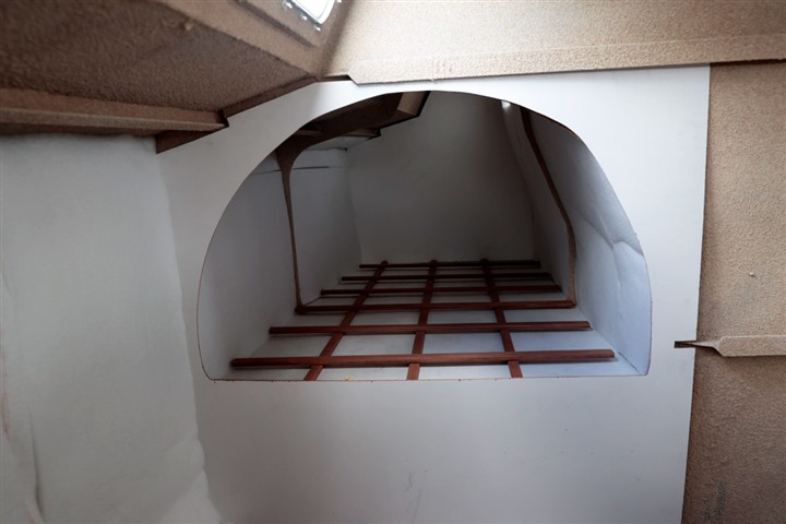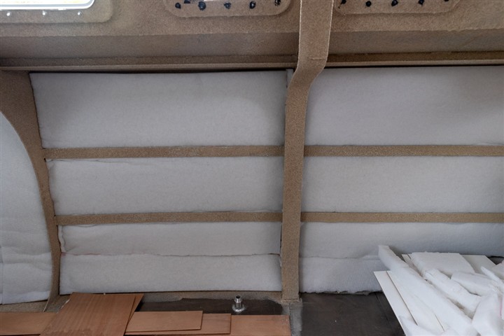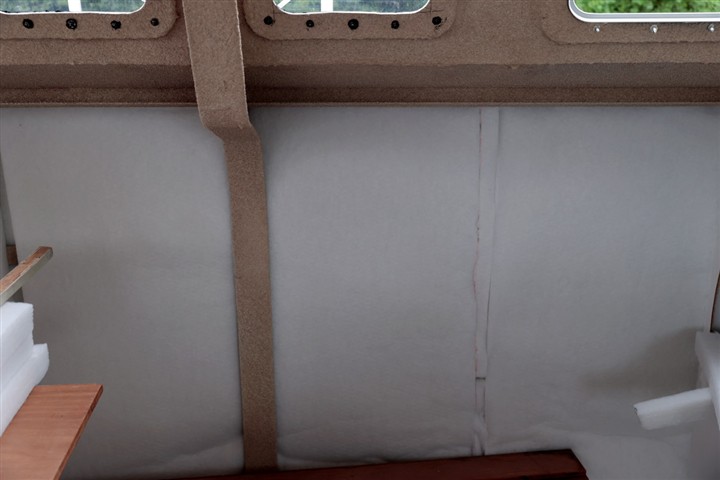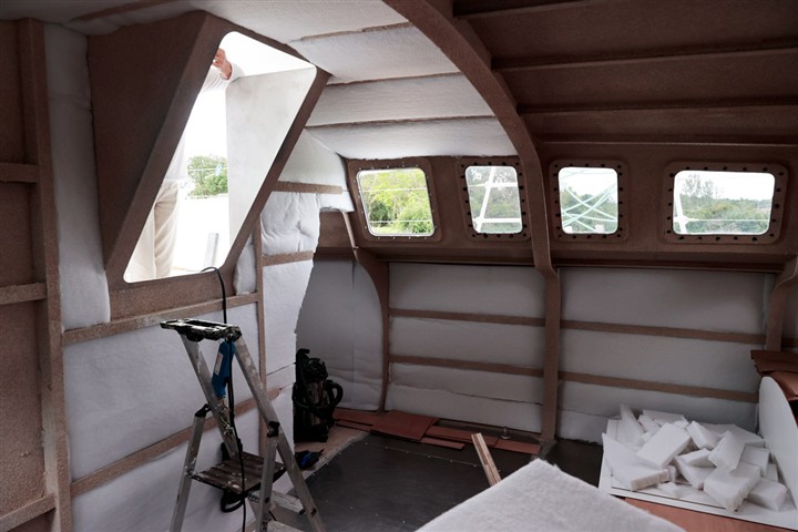 Pour gagner du poids les cloisons principales et certains meubles sont en sandwich verre-époxy avec mise en oeuvre sous vide. De même que pour les planchers. Les cloisons sont peintes en blanc avec une peinture polyuréthane bi-composante, les planchers sont peints en gris avec addition d'une poudre antidérapante,
