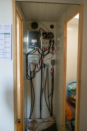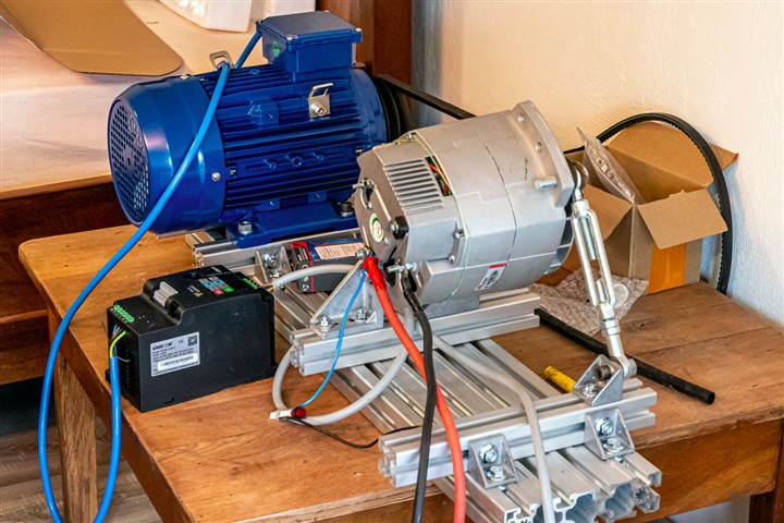 Pour cela nous partons d'une bonne capacité du parc batterie avec un système de charge adapté. Jean Rivière, grand maître des électrons (http://jean.riviere.free.fr/), a conçu le système électrique de Noème d'eux. Actuellement nous en sommes à la phase des essais pour valider l'ensemble du système. Production, consommation, recharge. Un système en 24V capable d'alimenter tout ce matériel en 220V, 24V et 12V.