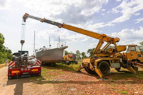Arrivée du mât au chantier à Parempuyre depuis Fréjus.