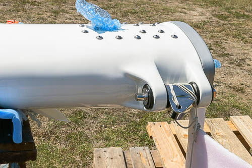 Mât en carbone de 21,40 m pour un poids d'environ 150 kg pour une section de 258x262 mm, rétreint longitudinal et latéral en tête. Ne reste plus qu'à monter l'accastillage et installer le gréement.