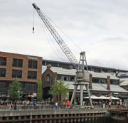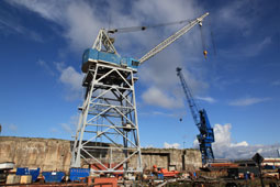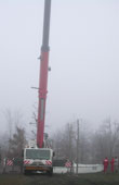 Le jour de la manutention la pluie laissa place à un temps calme, froid, humide et brumeux. Après plusieurs jours de précipitations intenses, le terrain détrempé rendait la mise en place de la grue délicate. L'installation fut épineuse et laborieuse. La grue enfin immobilisée et les sangles glissées autour de la coque, le levage ne prit que dix minutes pour hisser le bateau, franchir la cîme des arbres et le déposer sur le camion stationné un peu plus loin.