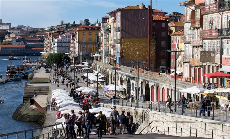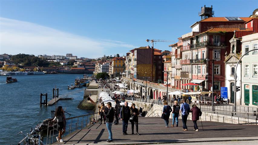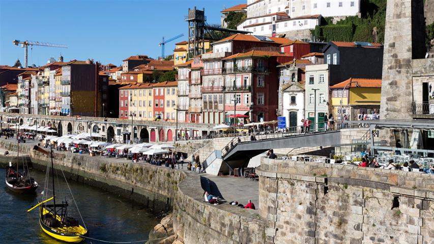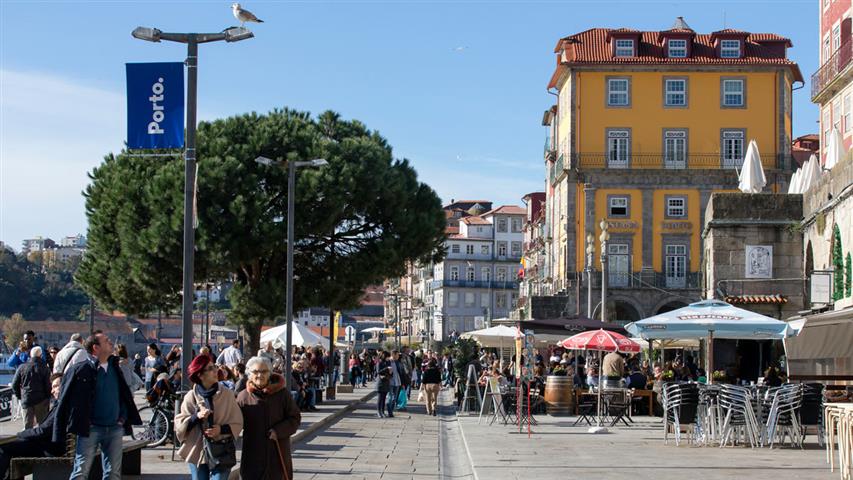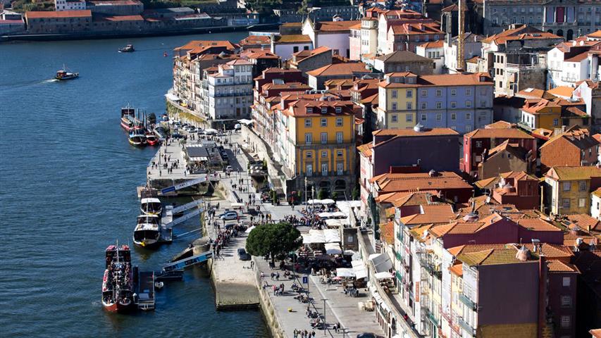 Porto domine le Douro depuis plus de 2000 ans. Les romains l'avaient baptisée Portus (le port). La ville s'agrippe sur les versants étagés des collines qui surplombent le fleuve Douro. Le paysage urbain est remarquable. Porto est la deuxième grande métropole du Portugal après Lisbonne. Le centre historique de Porto Ribeira est désormais sur la liste du patrimoine mondial de l'UNESCO. Un dédale de rues enchevêtrées, encaissées, qui montent ou descendent sans arrêt, des escaliers interminables, des monuments médiévaux à profusion, néoclassiques, baroques ou de style manuélin sont une véritable invitation à visiter la ville à pied. Parmi tous ces monuments nous pouvons citer : l'église Saint Ildefonso dont la façade extérieure est recouverte de 11.000 azulejos ornés de motifs traditionnels, la gare Sao Bento sans doute la plus belle gare d’Europe dont le hall d'entrée est recouvert de multiples scènes historiques composées à partir d'azuléjos, l’ancienne cathédrale fortifiée de Sé et le Palais de l’Evêque qui surplombent la ville de leurs corps imposants et massifs, l’avenue des Alliés (Avenida Dos Aliados) : ce boulevard impressionnant représente le cœur de Porto et mène jusqu’au Câmara Municipal do Porto (hôtel de ville) et à son impressionant clocher de 70 mètres de haut, la tour des Clercs qui domine la ville (240 marches à gravir pour dominer la ville).