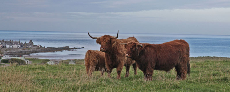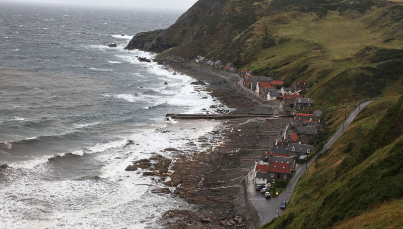 Crovie : une simple digue face à la mer. Un village incroyable. Les maisons des pêcheurs situées en contrebas des falaises, édifiées en une unique file à la limite du rivage, leurs pignons tournés vers la mer semblent résignés à affronter le mauvais temps. La rue principale n'est qu'un chemin étroit où les voitures ne peuvent circuler.