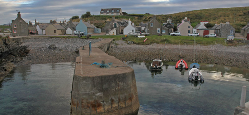 Sandend : Minuscule port et un unique alignement de maisons de pêcheur le long du quai. Il est si petit que seule l'annexe peut y accéder.