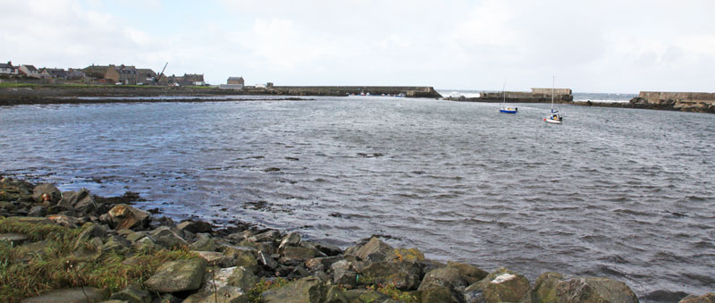 Sandhaven : à l'abandon. La baie était protégée par une grande jetée maintenant en partie effondrée. On peut toujours mouiller au centre de la baie par beau temps.