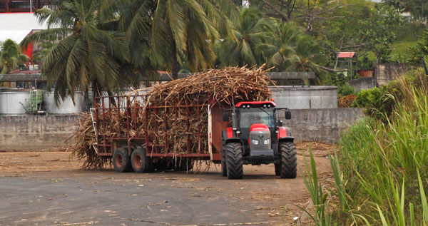 Les "cabrouets" tirés par des boeufs assuraient le transport à la sucrerie. Quelques lignes de chemin de fer furent édifiées sur certaines plantations pour le transport de la canne en cohabitation avec les "cabrouets". Aujourd'hui la canne est mise directement dans de grandes remorques, attelées à des tracteurs voire des camions, par des engins mécanisés qui coupent, tronçonnent et effeuillent les tiges. Si la récolte mécanisée assure une meilleure rentabilité de la production, des cailloux et de la terre peuvent être happés par la machine avec le risque d'endommager les rouleaux du moulin.