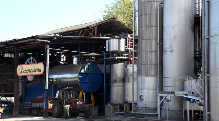 La distillation s'opère dans la colonne à distiller. Le vin qui part des cuves va d'abord passer dans un chauffe-vin pour le monter en température puis va entrer par le haut dans la colonne à distiller. Il va ensuite descendre de plateau en plateau. La vapeur, produite par la chaudière, va entrer en pied de colonne et remonter car plus légère que l'air. C'est cette vapeur qui va capter l'alcool contenu dans le jus fermenté puis se condenser en passant par un serpentin situé dans un bac d'eau fraîche. Ainsi nait le rhum agricole.
