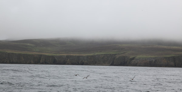 Bien sûr temps couvert et froid pour découvrir cette île plate de 120 km², sans arbres et environ 600 habitants. L’habitat y est dispersé, pas de vraie ville même si Baltasound avec son port fait office de centre urbain. Des fermes éparpillées dans la lande, certaines abandonnées, et surtout une poste, la poste la plus septentrionale du Royaume-Uni.