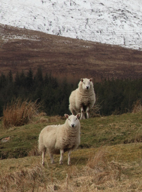 Le départ d’Inverness, chef-lieu des Highlands et lieu d’hivernage de Noème au nord de l’Ecosse est prévu pour la mi-mai. Fin avril direction Inverness en voiture pour préparer le voilier en vue de sa croisière nordique. Temps froid, venté, couvert et neigeux en cette fin d’avril en Ecosse. Chutes de neige et pluie sont entrecoupées de quelques rares éclaircies et d’un soleil timide qui par-ci par-là rendent moins pénible ces journées où le vent ne s’épuise jamais. Seuls les moutons ne sont pas perturbés par ce climat ; recouverts d’une couche de laine épaisse et bouclée, ils broutent tranquillement une herbe bien grasse et parfois daignent abandonner leur verdure pour examiner d’un regard morne ces curieux bipèdes qui les observent les pieds dans la gadoue.