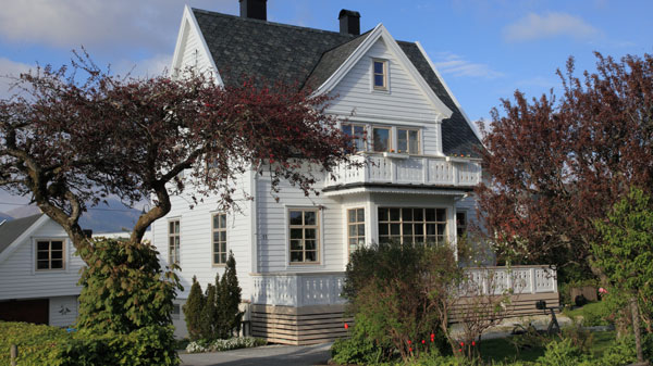 Sur la facade de certaines maisons un écriteau accroché retrace leur histoire et celle des propriétaires qui s’y sont succédés. Au numéro 33, par exemple, séjourna l’écrivain Knut Hamsun. Dans son ouvrage « Vagabond » il décrit une visite à Mme Evanger au bar à vin du quartier voisin. Cet édifice fût construit en 1860 peu de temps après la fondation de la ville et abrita quelques années une boutique et des bureaux. Le photographe Berg établit ensuite un studio de photographie avant qu’un fournisseur de matériel nautique au début du vingtième siècle ne s’y installe pour de nombreuses années.