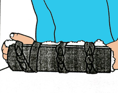 On peut utiliser une couverture roulée pour former une gouttière, y déposer le membre fracturé et lier par des bandelettes. On peut aussi utiliser deux planches, une de chaque côté.