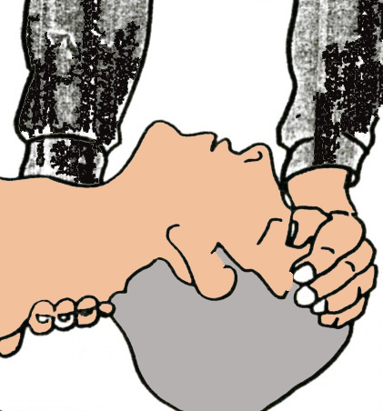 - La bouche de l’opérateur s’applique sur le nez de la victime.