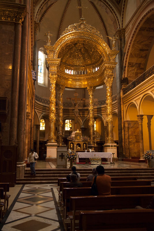 La nouvelle cathédrale Immaculée Conception, dont la construction débuta vers 1880, conçue par un religieux allemand du nom de John Sthiele, est considérée comme l'une des plus belles d'Amérique du Sud. Ses trois coupoles démesurées et bleues le soir au soleil couchant s'illuminent et offrent alors au regard un spectacle irréel. Mais une erreur de conception empécha la pose des cloches dans le clocher car trop lourdes pour la structure. Dans le choeur un magnifique dais à quatre colonnes se dresse au-dessus du maître-autel. L'ensemble est de bois sculté recouvert de feuilles d'or. Le sol est de marbre de Carrare. Les jolis vitraux, soit d'origine européenne soit créés et fabriqués à Cuenca, laissent pénétrer et diffuser une douce lumière dans l'ensemble de la cathédrale.