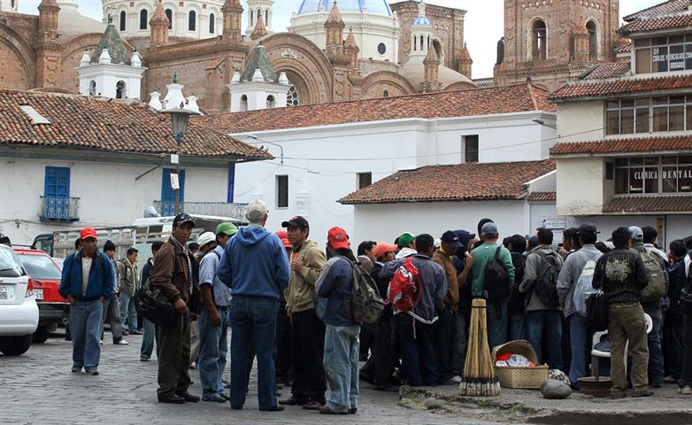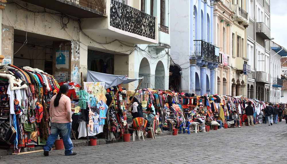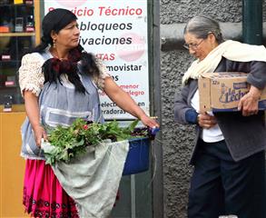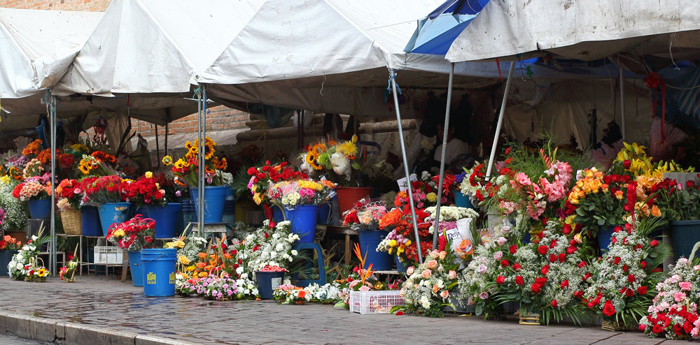 En arrière de la nouvelle cathédrale se tient un marché aux fleurs lumineux, coloré, odoriférant. Derrière leurs étals, affairées, assises sur de petits tabourets, les Cholas cuencanas en costume traditionnel vendent une variété infinie de fleurs parfumées.