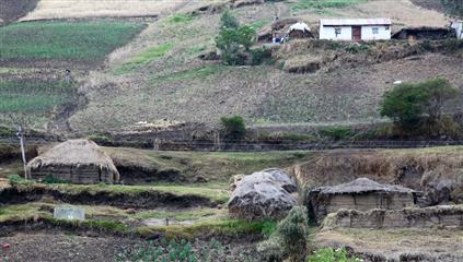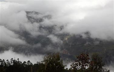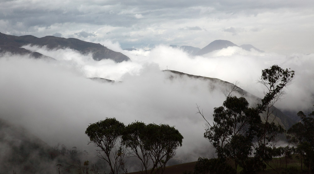 Tout au long du trajet, la route en bon état, serpente au milieu des montagnes et dans les nuages. Le paysage est bucolique et verdoyant, alternant culture et élevage qui prédominent dans cette région. Lamas, vaches et moutons paissent sur des terres grasses entre eucaliptus et résineux. La température à cette altitude moyenne de 3000 mètres est fraîche et le vent et la pluie ne sont pas en reste