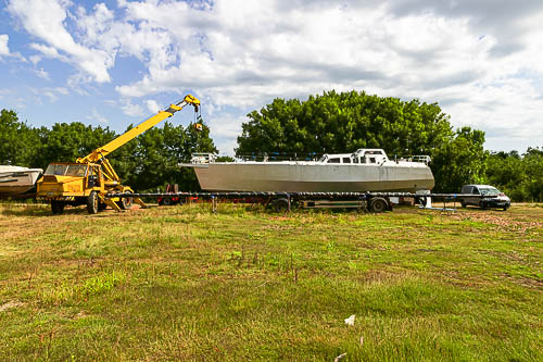 Arrivée du mât au chantier à Parempuyre depuis Fréjus.
