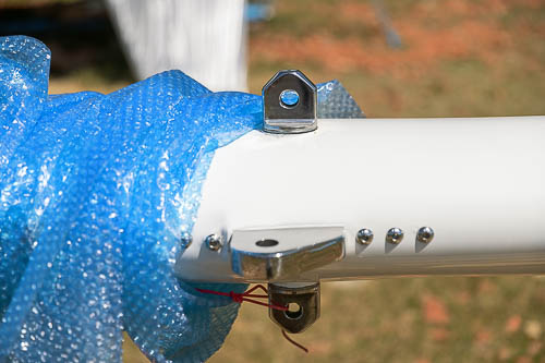 Pose des taquets coinceurs, rails d'écoute de GV, trinquette et yankee.