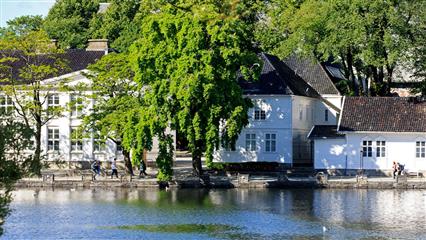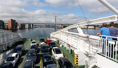 En début d'après-midi Noème se glisse vers le petit port de Vagen au centre de la ville entre deux énormes HLM à passagers, amarrés au quai. Très surprenant. Sur le quai nous apercevons Reidar qui nous fait de garnds signes. Nous accostons il monte à bord, quelques effusions faites de retenues, ici nous sommes chez les nordiques, et nous cherchons une place dans les deux petits ports municipaux réservés au bateau en transit. Tout est pris ou bien mal commode. Reidar nous propose alors d'aller à la marina où son bateau est amarré à l'année. C'est à 5 milles au nord sur une petite île reliée à Stavanger par trois ponts. Les ponts et les ferries sont tout aussi innombrables que les bateaux en Norvège.