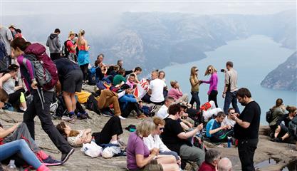 En attendant ce sera visite de la région, souper cher Reidar en compagnie de son épouse (qui elle ne navigue pas), marche en montagne pour aller au fameux Preikestolen (Pulpit rock en anglais) falaise en aplomb de 604m absolument verticale et tellement célèbre que la foule s'y précipite : touristes du monde entier mais aussi norvégiens. Visite du Oil muséum : toute l'histoire technologique de l'explotation pétrolière et des plateformes de A à Z ainsi que la répercussion de l'utilisation des produits fossiles sur le réchauffement climatique. Flânerie dans les rues de la vieille ville bordées de maison en bois aux devantures fleuries.