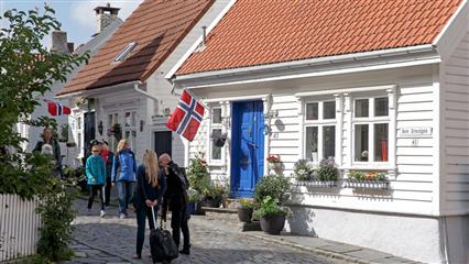 Ville industrieuse, capitale norvégienne de l'exploitation pétrolière, entre tradition et modernité, mais la modernité semble l'emporter sur la tradition, Stavanger est situé dans un véritable port naturel abrité de tous les vents. De multiples îles et îlots entourent ce port naturel. La stucture des quais est particulière, ces derniers sont répartis sur les berges du fjord et des îles de manière aléatoire chacun ayant semble-t-il construit son propre quai à la demande, autant pour les particuliers que les industriels. Il y a un nombre incroyable de petites marinas disséminées un peu partout dans les moindres infractuosités de la côte.